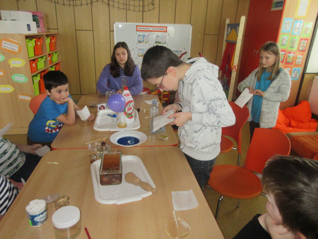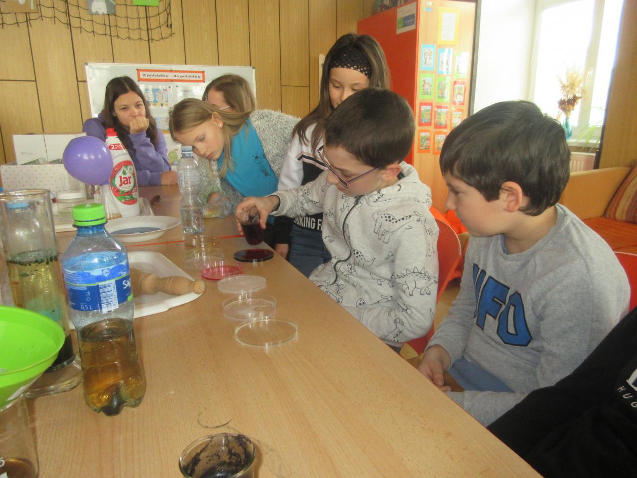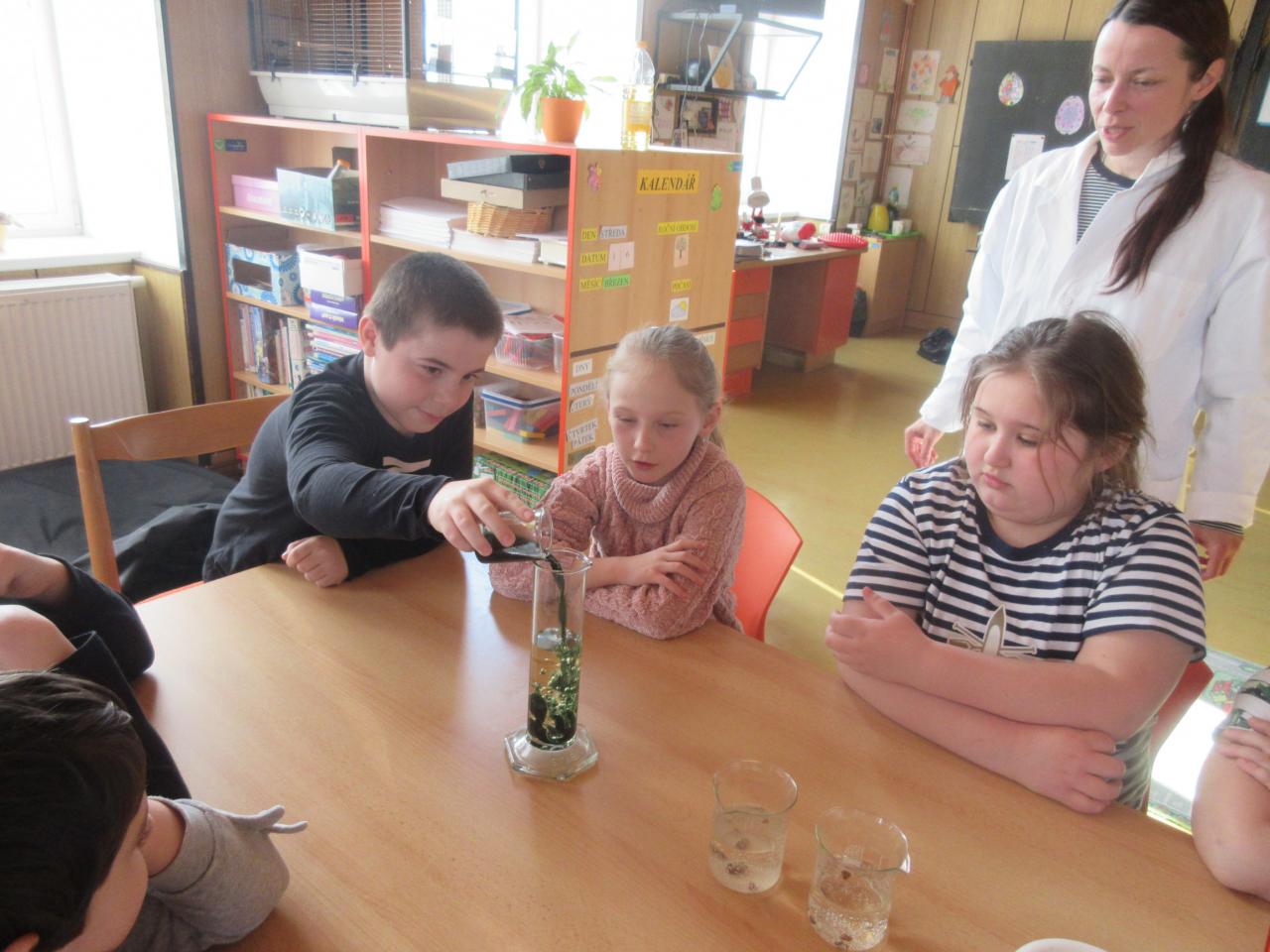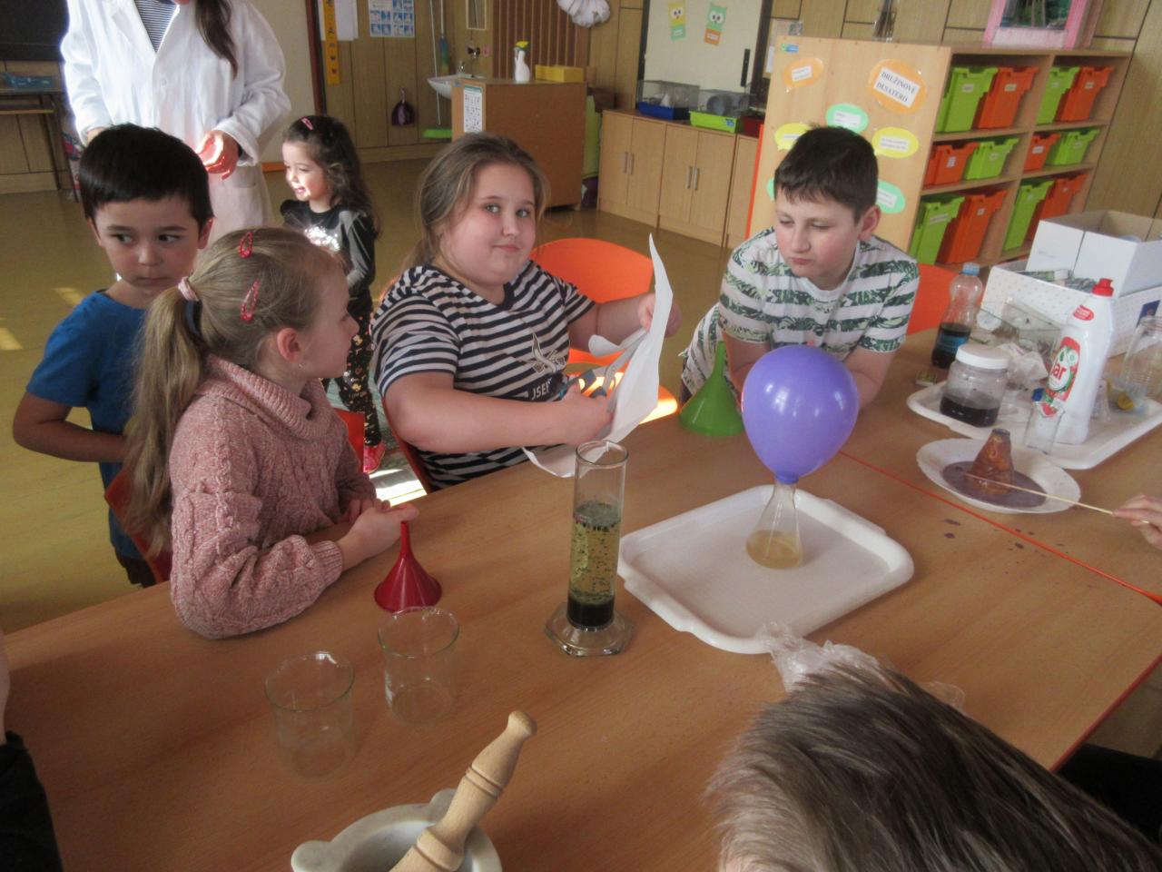 Do přírodovědné kroužku za námi přišla paní učitelka Juránková a ukázala nám několik pokusů. Viděli jsme např. fialovou sopku nebo zelenou lávovou lampu.