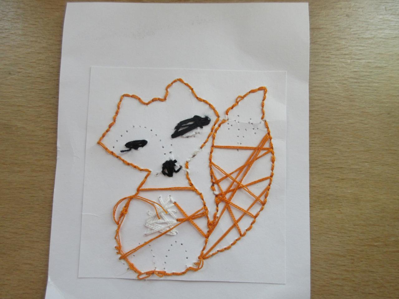 Tvořílek je jedním z kroužků, které v družině máme. A tady je ukázka naší práce - výšivka na papír.