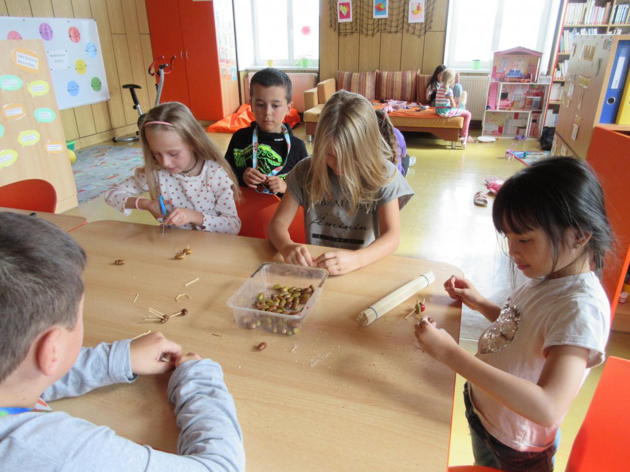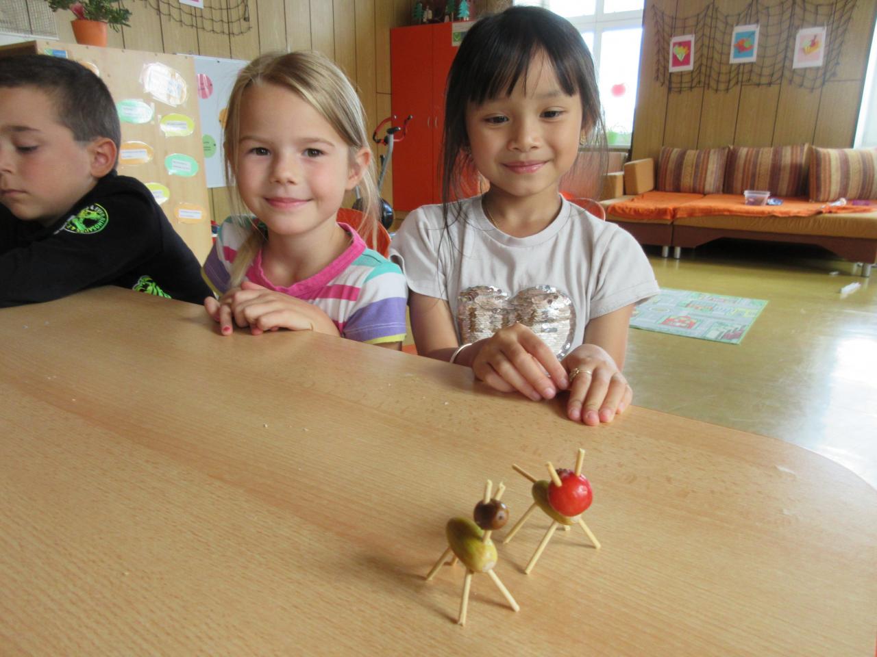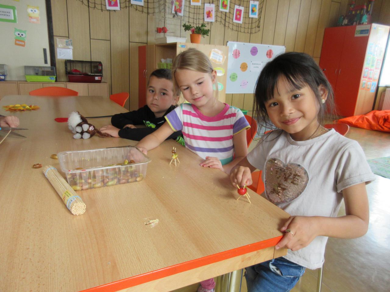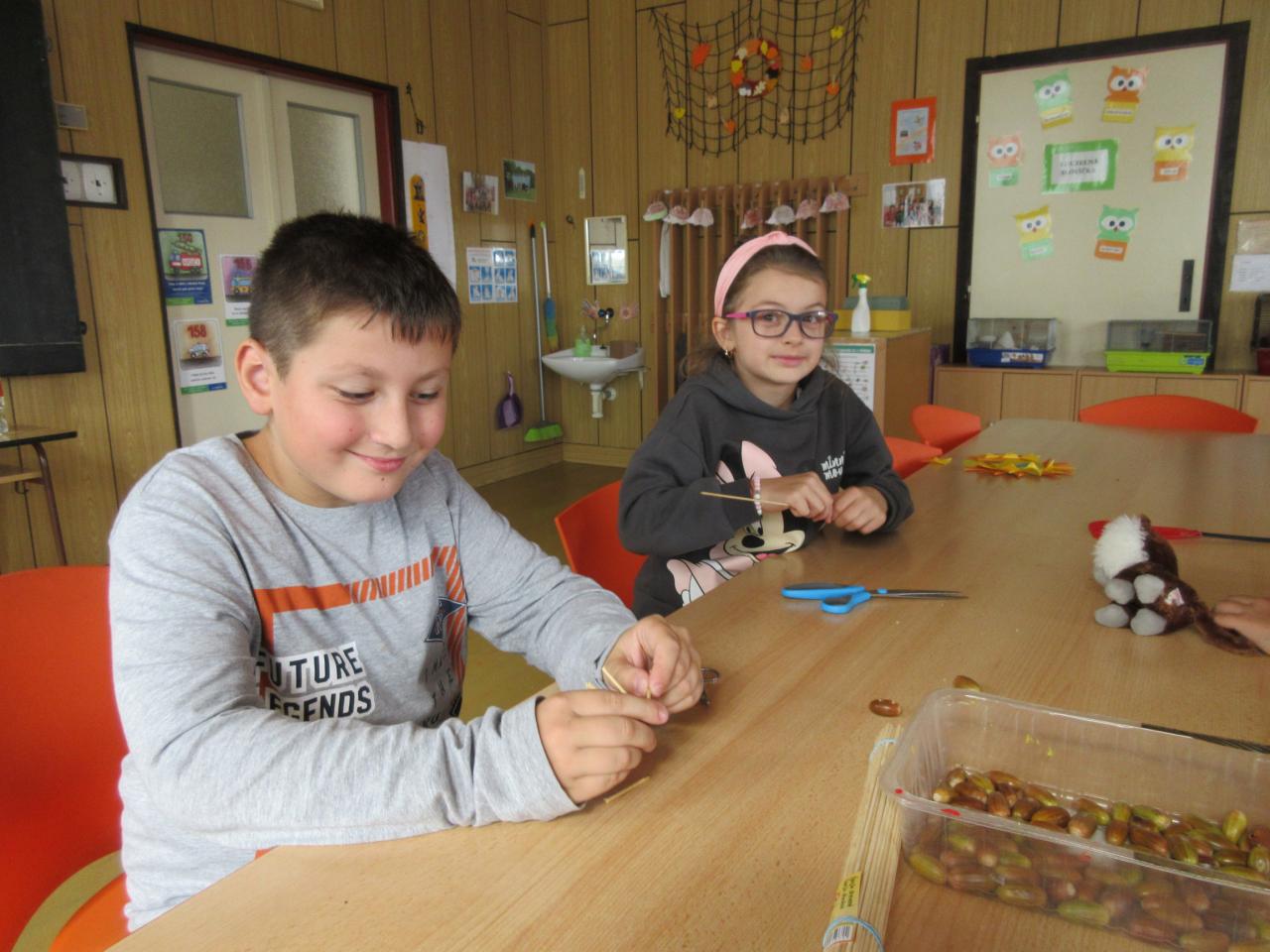Z nasbíraných žaludů jsme si vyrobili zvířátka.