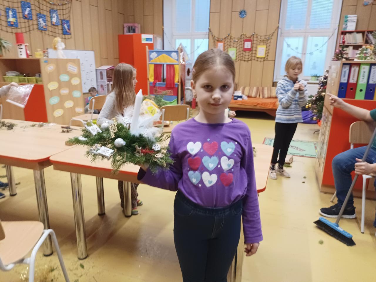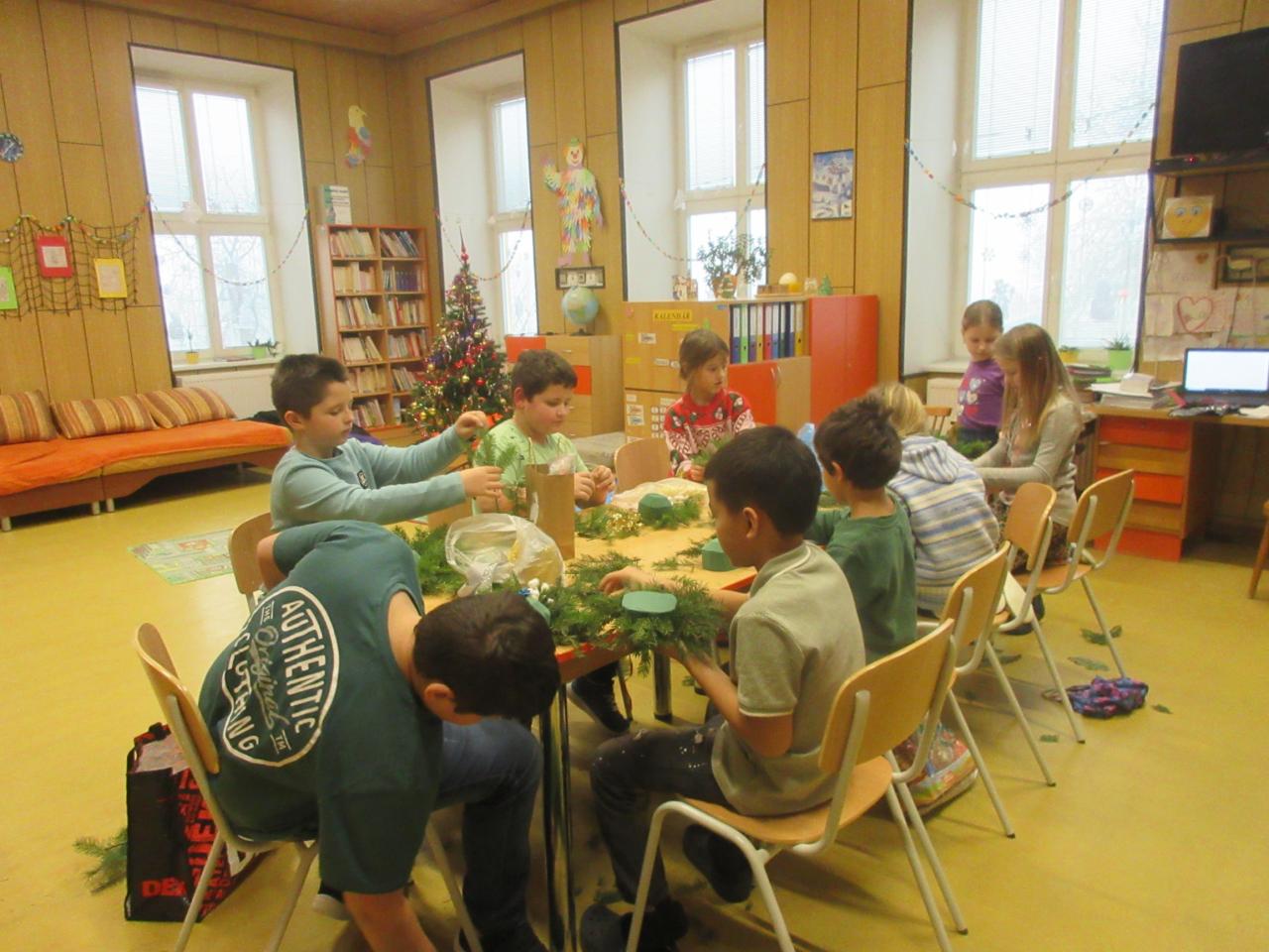 V předvánočním týdnu jsme si jako každoročně provoněli družinu vůní jehličí při vyrábění vánočních svícnů.