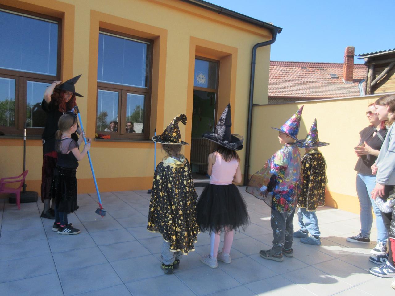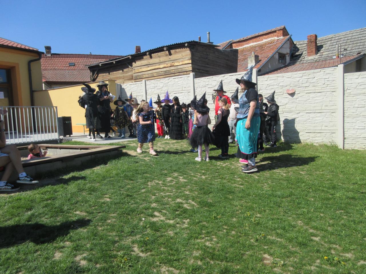 V pondělí 28. 4. se školní zahrada proměnila v čarodějnickou. Tyto pohádkové bytosti plnily různé úkoly a nakonec si nad ohništěm opekly i špekáček.